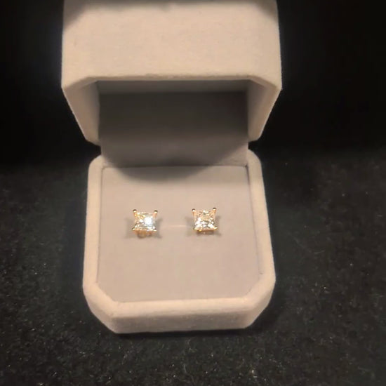 Each earring features a 1 carat princess-cut moissanite, offering exceptional brilliance, fire, and clarity. Set in solid 14K gold, these studs are made to last and never go out of style.