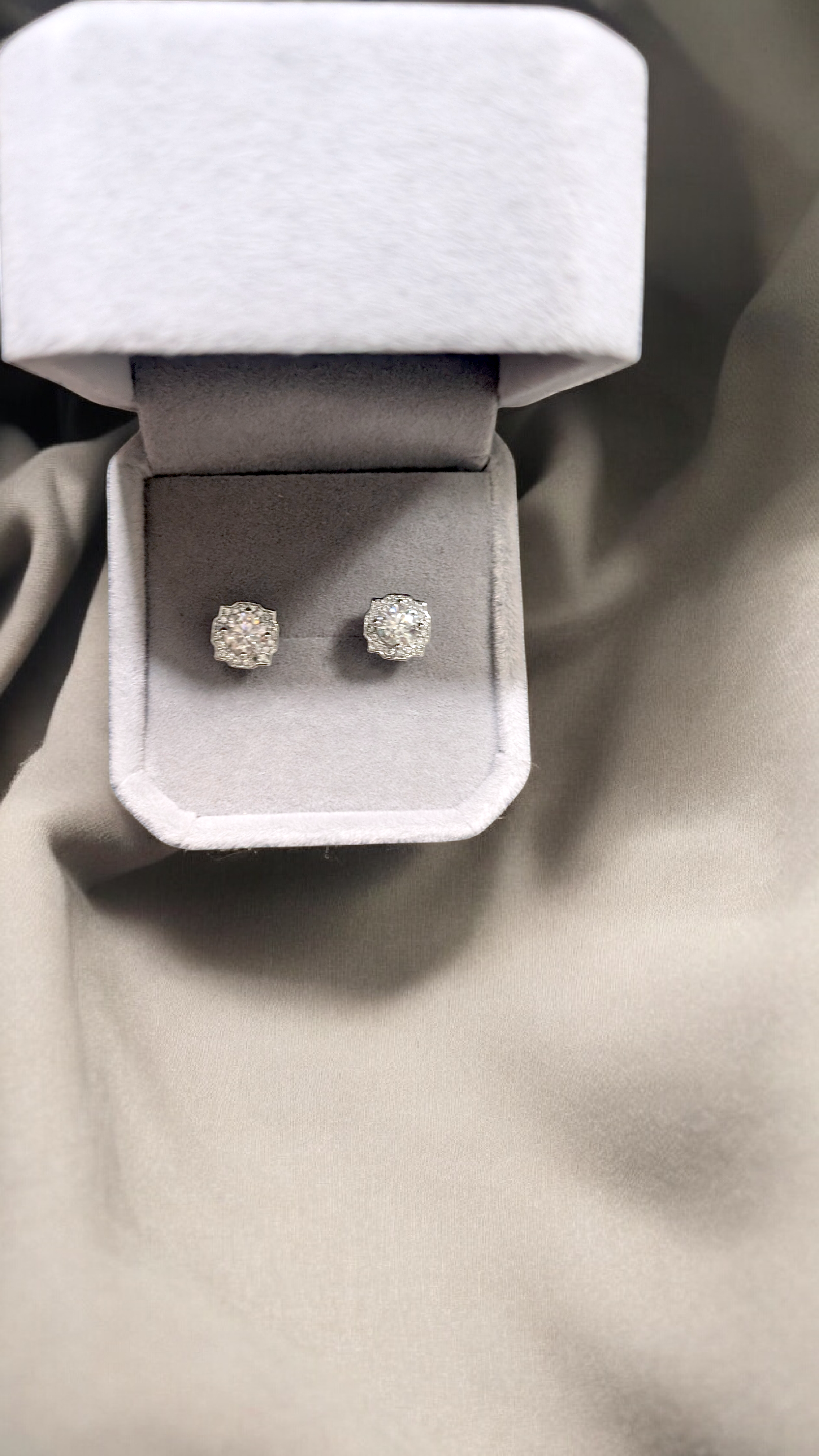 These GRA-certified 0.5ct moissanite halo stud earrings offer timeless elegance with eye-catching sparkle. Designed for everyday wear or special occasions, each earring features a brilliant moissanite center stone surrounded by a delicate halo for added shine. ✨