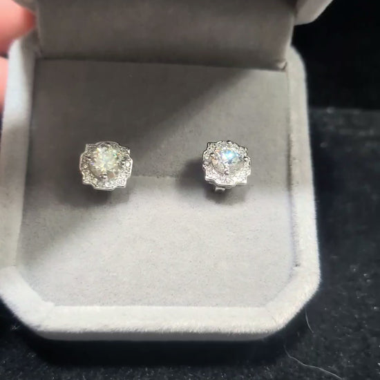 GRA Certified 0.5ct Moissanite Halo Stud Earrings – Sterling Silver